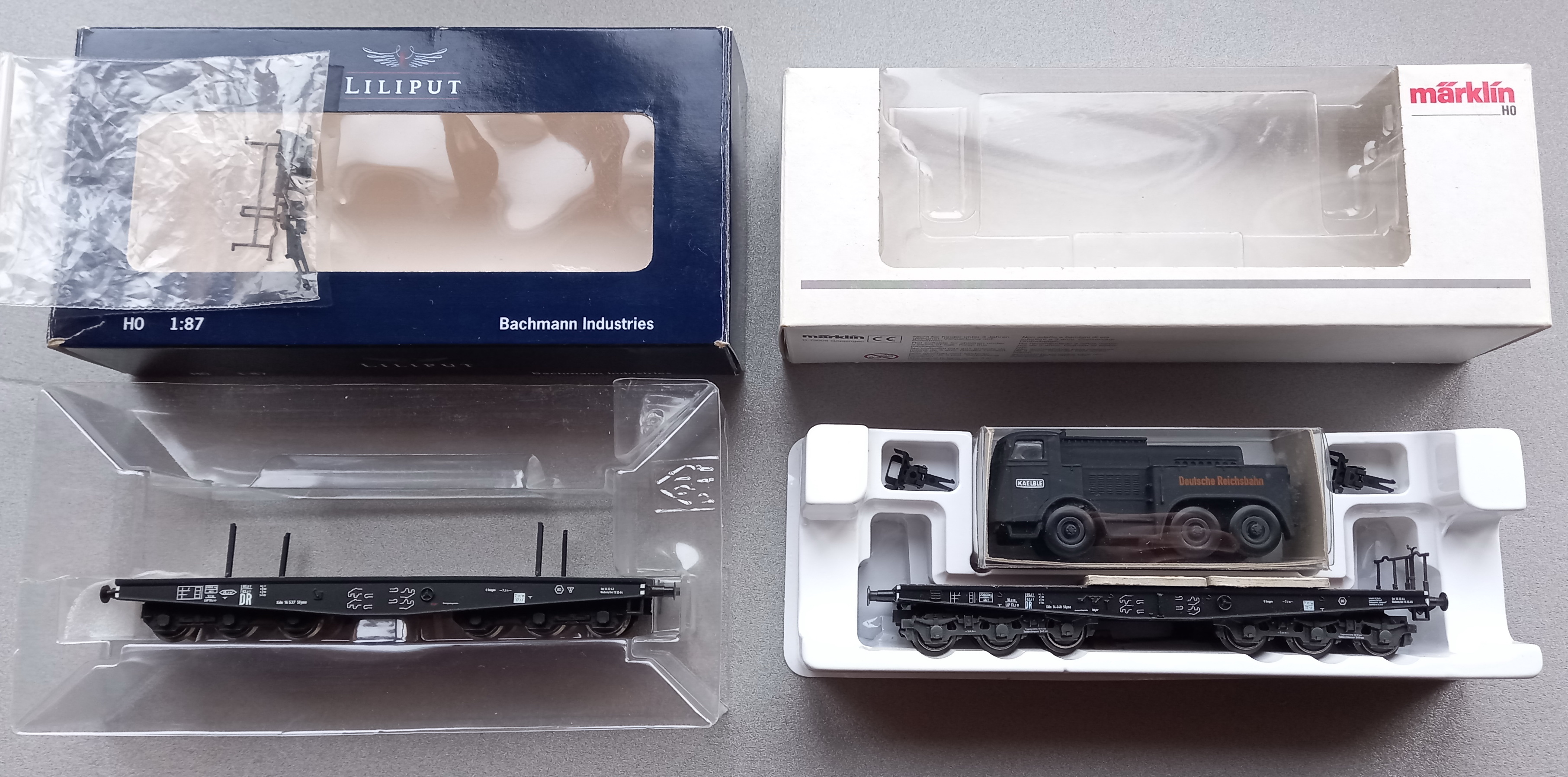 2. Marklin 4866 номер платформы 14440, даты: 1944-1945 годы - 8000 руб. за набор целиком. Возможна продажа платформы отдельно от грузовика Kaelble, в этом случае цена 5000 руб. По словам предыдущего владельца, колпары на вагоне изолированные. Проверить возможности нет.