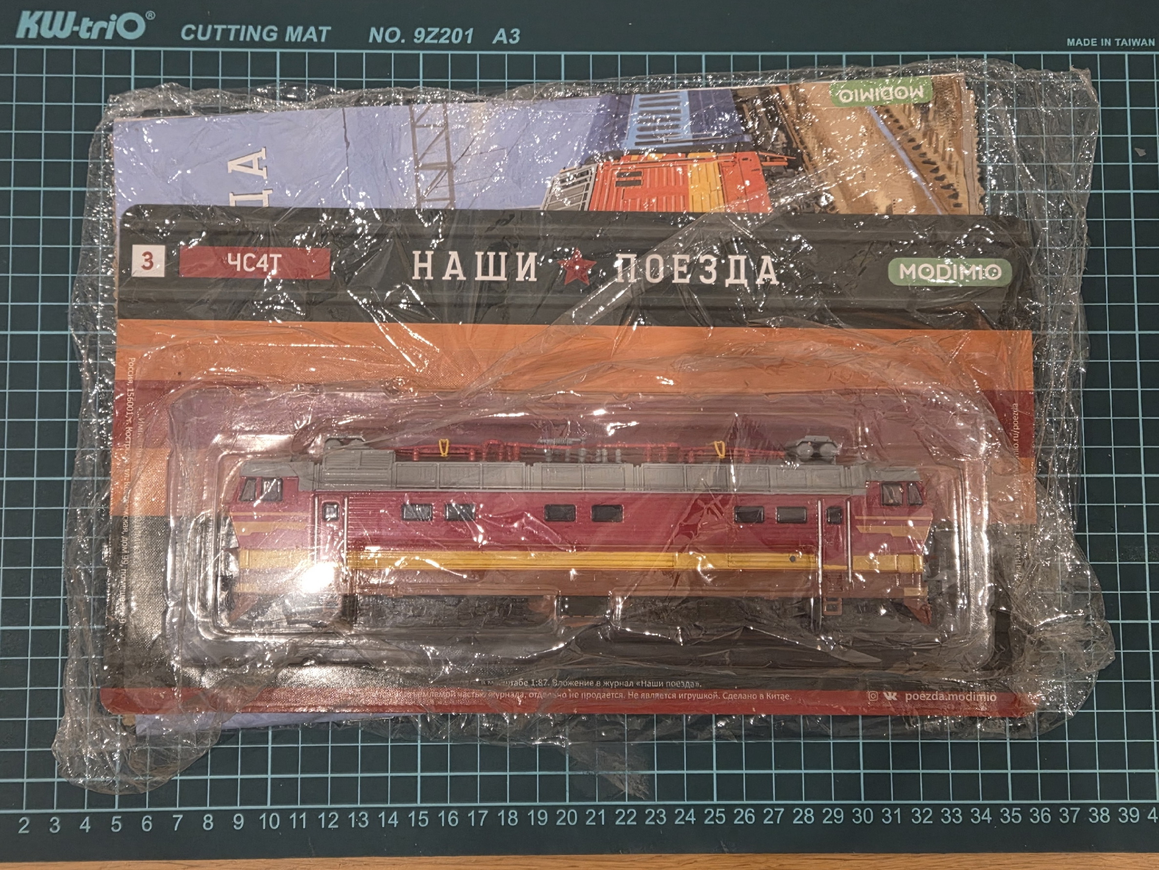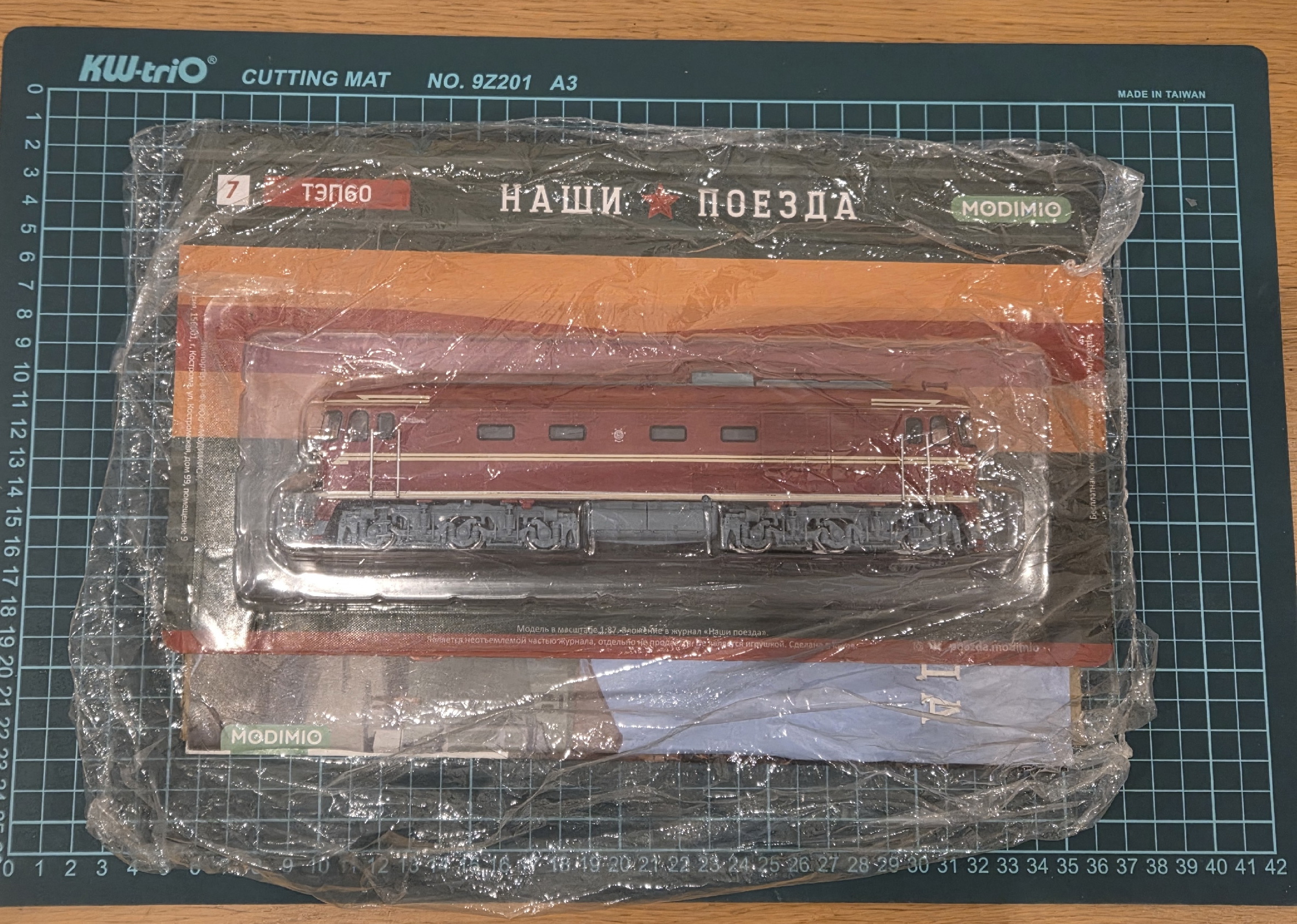 Запакованный. Абсолютно новый, целый. В комплекте журнал и открытка.